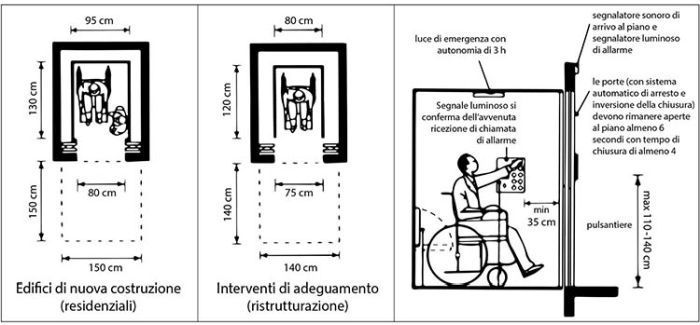 Comprendiamo l'abbattimento delle barriere architettoniche della legge 13/89 attraverso una semplice vignetta che illustra le misure idonee per rientrare nei parametri di legge:
